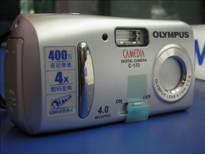 奥林巴斯C-170采用了一块1/2.5英寸400万有效像素CCD,等效焦距36.7mm的定焦镜头,4倍数码变焦。奥林巴斯C-170体积非常小巧,外观尺寸为101×52×36mm,重量大约为120g(不含电池及存储卡) 。