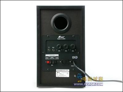 音箱后部是各种接口以及旋钮的所在地,另外值得注意的就是,这款音箱采用的是高灵敏度后倒相孔设计,比一般密闭的箱体可以产生更多的低音,不过这就对摆位有一定的要求,那就是不要紧靠墙壁,以避免削弱低音反射效果,一般来说距离墙壁30~35cm比较合适。