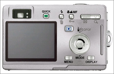 而S5I机身背面设计更为简洁明了。采用一块1.8英寸,分辨率为8.5万像素的LCD,与CASIO的S100一样,这款机器的液晶屏幕也是其软肋。但是这款机器还为用户准备了一个光学取景窗,这也是在卡片机上并不多见的配置。