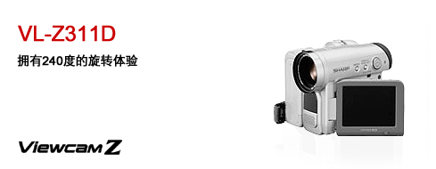 夏普Z311D是面向低端和家庭使用者的,它采用80万像素的1/6英寸CCD,10倍光学变焦,500倍数码变焦。VL-Z311D有两大卖点,首先是夏普全球公认的液晶显示屏技术用在了机身的LCD上,采用21.5万像素的CGSilicon(CG硅)系统超精细屏幕,相当于在明亮的室外(约10万勒克斯)约630cd/m2的亮度,在室外即使没有背光灯,也可以更长时间的拍摄。另外,可旋转机身一直是夏普DV的一大特色,这款Z311D将把手的旋转角度从原来的225°扩大到240°。拍摄时选取角度更自由、更省力。不过Z311D没有配备SD/MMC端口,所以不可以插入存储卡,不过对于只使用DV带的用户来讲没有存储卡端口的影响不大。