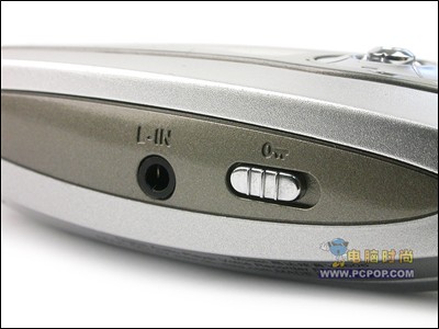 炫音VX606的功能键ON/OFF,MODE/EQ,REC/AB都集中在一测,而且小巧,而且开机键相当的敏感,小编不小心按的时间长了就来了个开关机大循环,它的关机方式比较的特别,有个进度格,需要长按,而且在进度格全部满了,才可以松手。在另一测是锁键和L-IN的插孔。虽然说设计的小,但是发现它们还不是很难。