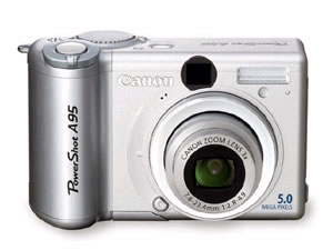 A95的外观设计延续了典型的佳能A系列风格, 具有1.8英寸可旋转LCD, 500万像素的CCD, 可拍摄最大分辨率2592X1944的照片,拥有3倍光学变焦镜头, 还加入了21种情景模式,最大的特点就是保持佳能A系列良好的手动功能,使初学者容易上手。
