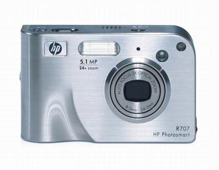 全新推出的HP Photosmart R707数码相机“拥有510万像素,3倍光学变焦,8倍数码变焦,具有全新的视触感。采用经久耐磨的不锈钢材料,符合人体工学的经典设计,在时尚外观下突显HP实用理念。”