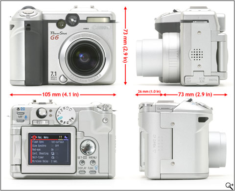 佳能中高端产品 Power Shot G 系列中,只有 PowerShot G5 这一代机型采用了黑色机身,其他都是采用了银灰色的配色。佳能 PowerShot G6 就是采用银色作为其主色调,却没有采用全金属机身,整个机身是一半金属一半塑料,整机前面板为金属材质、而机身后背则为塑料材质。虽然觉得这样的设计有利于减轻了机身重量,但是相对于具有更好散热效果的金属机身来说,这样的设计不免还是有“偷工减料”的嫌疑。