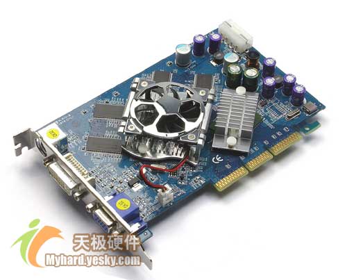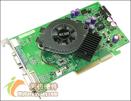 ELSA影雷者A660显卡采用基于0.11微米制作工艺的nVIDIA PCX6600 GPU核心。其核心标准频率300MHz,具备8条像素渲染管线;显存仍旧为3.6ns的三星产品,具备128bit位宽和128M容量的“双128规格”,其标准频率为550MHz。通过HSI桥接芯片支持AGP 8X;接口采用标准VGA+DVI+TV OUT三头视频输出。ELSA在该显卡上使用多颗三洋直插式电容和一些三洋SVP低ESR电容,为超频提供了较好的供电稳压环境。