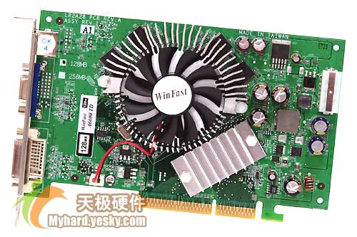作为NVIDIA最亲密的合作伙伴,丽台推出了基于Geforce6600核心的WinFast A6600 TD AGP 8X显卡。丽台显卡的质量一直很不错,这款A6600 TD采用绿色PCB板,走线简明清晰,焊点干净利落。A6600TD AGP版采用NV43图形核芯,0.11微米工艺制程,默认核心/显存工作频率为300MHz/550MHz,支持DirectX 9.0c和OpenGL 1.5标准。显卡同样采用了HSI桥接芯片,实现对AGP 8X的支持。