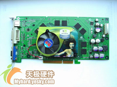 目前,6800系列中以搭配普通Micro-BGA DDR1显存的6800标准版性价比最高,虽然频率只是不太起眼的325Mhz/700Mhz,但是凭借着NV40先进的架构,6800标准版可以说是2K价位最超值的中高端显卡。这款魔力6800超强版最大卖点除了低价就是P212公版设计,还有搭配公版散热器。捷波惯用的翠绿色PCB板,同时散热器放弃了Gefroce6800的标配散热器,采用了散热效能更为强大的Gefroce6800GT公版散热器,显存部分采用热管散热。显存128M,显存位宽256bit,显存速度2.2ns,支持AGP 8X。
