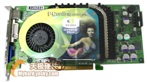 金雕6800权威版采用了NV40核心,拥有12条像素流水线和6个顶点渲染引擎,翔升6800权威版采用公版设计,布线工整,用料也没有因为它的超低价格有太多的省料,显卡的供电系统采用高品质的贴片电容,焊点圆润光滑,尽显大厂风范。搭载了现代2.8NS颗粒、显存容量128MB 256bit DDR,核心频率为400MHz,显存频率700MHz。接口部分除了普通的15针D-Sub以外还提供了S端子和DVI-I,附件齐全。