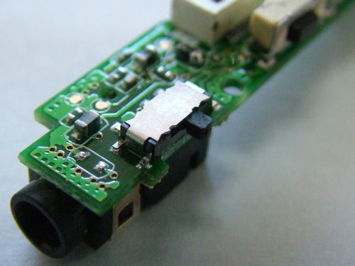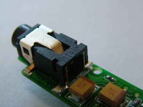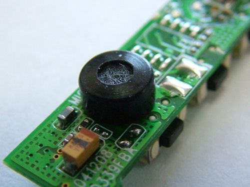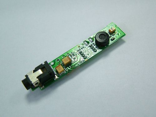 最后电路板上最明显的,就要算是那个黑色的圆柱状部件了,它就是我们所熟悉的MIC了。高灵敏度MIC给使用者带来的是,清晰而逼真的原音重现,在它的帮助下我们不仅能超越时空回到过去,而且更能为繁忙而紧张的工作,减轻大量负荷。由于性能方面的要求,这个MIC周围背黑色橡胶所包裹,里面还盖有一层黑色海面,目的只有两个那就是绝缘和防尘。