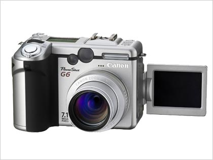 PowerShot G6首次采用了1/1.8英寸730万像素的CCD影像传感器,有效像素为710万,最大分辨率可达3072×2304dpi;G6配置了4倍光学变焦的佳能镜头,最大光圈F2.0,其焦距相当于传统胶片相机视角的35~140mm,最大光圈达到F2.0的镜头结构为7组8片。佳能G6的另一大改变是使用了多种自动对焦方式,包括TTL自动对焦(连续/单次)、9点AiAF自动对焦和单点自动对焦(任意位置)。从这样的参数来看相比早前的G5没有大的提升,只是在G5 500万像素的基础上升级到700万像素,这倒像是G5的升级版本。同时G6这样的参数相对于PRO1又有很大差别,看来G6是介于PRO1和G5的中端产品了。