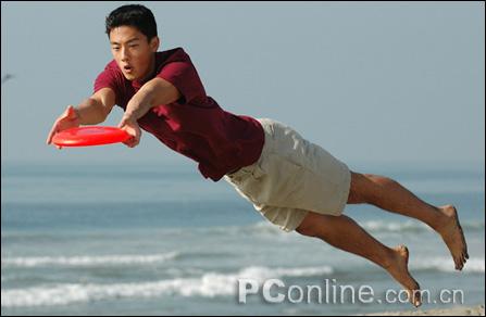 这张样片就是追踪对焦的典范之作了。这幅照片的表现力也相当的突出,在画面中着重表现出了人物,即使是人物的表情在图中也是有着完美的表现,而在背景上的虚化也更加突出了人物的动作。