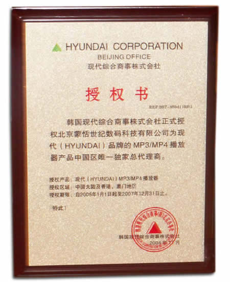 4月11日下午,韩国现代公司在北京“今晚8点半”酒吧举行了新品MP3/MP4发布会,并宣布中国蒙恬公司成为现代公司在中国的总代理。