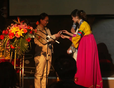模特产品展示完产品后,发布会开展了抽奖活动,被抽中的嘉宾获赠了新款现代MP3,很令人羡慕啊。