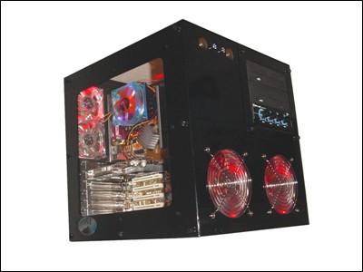 这款机箱设计合理,它把机箱内部空间为两部分,并内置三个12cm风扇和两个8cm风扇,为内部散热做足了准备。