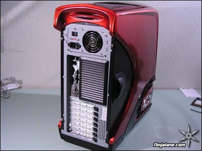 我们看到,这款机箱采用了通体的红色,造型线条的特点很鲜明,突出了以“武士”为特点的设计理念。