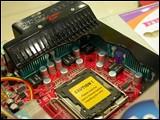 扩展接口方面,该主板提供了1个PCI-E ×16、2个PCI-E ×1、2个PCI和4个内存插槽,4个S-ATA、2个IEEE1394和8个USB2.0接口。但是,主板的I/O面板被省略了,传统的COM串口、LPT并口,音频输出/输入接口都统统没有了,只留了4个USB2.0接口和2个RJ45网络接口。而取代它们的则是两个用于给主板供电电路散热的风扇!这便是这款主板与普通主板的区别之一。