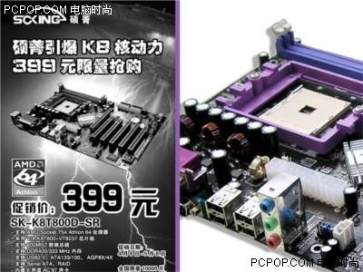 这款399元的主板K8T800D-SR确实非常诱人!而其它K8T800主板至少也要在500元左右,性价比优势显而易见。