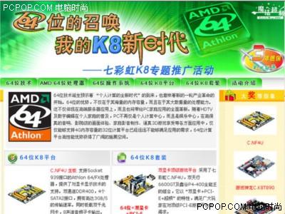 而作为七彩虹此次“64位的召唤,我的K8新时代”的K8普及活动的主角之一,七彩虹此款主板成为了打造 DX9 PCI-E整合平台的高性价比解决方案,另外,在活动期间,购买此款K8主板的用户,凭借主板上的SN号,可以登陆七彩虹专区http://k8.qicaihong.com ,还有机会获大奖。
