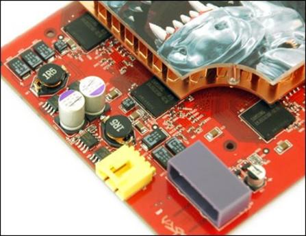 这样高的核心规格搭配的也是目前家用显示卡中最强的DDR3显存系统,位宽为256bit,容量为256M,采用的显存颗粒为三星原厂1.6ns M-BGA封装的颗粒,额定频率可以达到1200MHz,是当今拥有最高显存频率的显卡。
