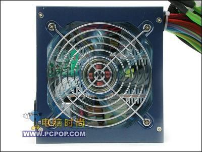 首先这款电源采用了12cm大规格风扇,一方面可以给电源带来更大的风量,另一方面也由于大规格风扇较低的转速而降低了风扇的噪音。