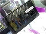 该款电源,表面采用了黑色的烤漆工艺,这到是和它们的机箱做工有些相似。在电源的底部更采用了直径12cm的大风力风扇来提高散热能力,并且在工作状态中还能发出幽蓝色的荧光,这无疑能给机箱内部带来另一种别样的风情。当然,首先是机箱盖要保证采用透明的,或根本不盖,要不说什么也是白搭。