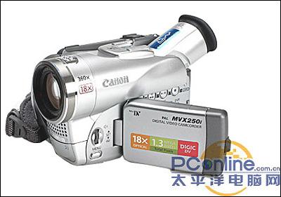 MVX250i的突出优势在于其采用了1/4.5英寸133万象素的大面积CCD传感器,在DV中CCD的面积对于拍摄画质远比象素值更为重要,MVX250i采用了更大的CCD使得其在各种拍摄环境中都能获得更佳的拍摄画质,尤其是在光线不足的环境中效果尤其明显。MVX250i的外形也颇为吸引人,不同于佳能DV一贯中庸的外形,MVX250i显得更为时尚而且专业,硕大的镜头十分突出,做工也比佳能的入门级别产品更加细致。目前许多商家正在促销MVX250i,不足6500元的售价并附送128MB的SD卡,对于要求较高的用户MVX250i是一款很有魅力的产品。