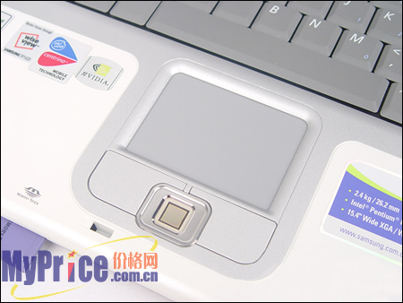 三星X30笔记本电脑的触控板也采用比较特殊的设计,在它的左右键之间有一个“指纹识别系统”的触控屏,能够提供指纹验证功能。在开机BIOS自检后即进行指纹身份认证,此外,X30还可以用指纹密码替代各种ID和密码、硬盘映射空间和多用户分级管理等,确保文件安全。
