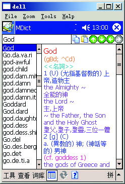 MDict就是一款基于Pocket PC操作系统且由个人开发的免费电子词典,它自身不带有词库,而使用已有的词典数据,因此体积十分小巧。