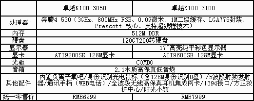 两款机型价格差距为1000元,要更正的是3050并没有识别U盘等附送设备,还有5波段射频发射器何无线耳机也没有,这1000元是专门为高端用户配备豪华设备的。相对来说还是值得的,首先ATI9600显卡比ATI9200要优秀不少,而且还享受有无线耳机等高档外设,等等大约4种附加设备价值也是不菲的。