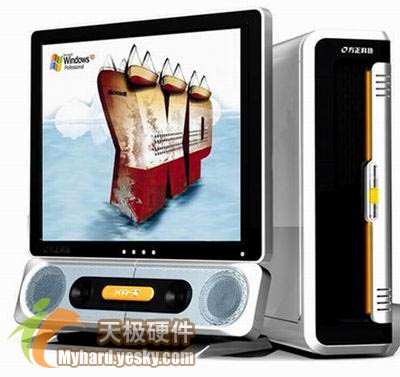 方正T150采用了白色的主色调,而其音箱如同积木一样镶嵌在彩显之下,由于LCD彩显并不会如CRT彩显一样在振动下会晃动,所以这一设计也非常不错。在外层涂层上,方正声称采用了进口钢琴漆机身喷涂处理,事实上,其质感也分外感人。前后分别使用了黑色的网栅设计,这对于机箱散热还是有一定帮助的,重要的是,栅栏式设计还从未有人尝试过,此次看来,效果不错。