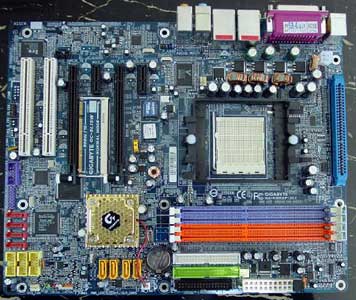 技嘉在一段时间里,见不到广告同样也见不到促销,实在让人难以捉摸。到K8的时代,技嘉终于又开始拓展大陆市场,发布了它的旗舰产品,采用NF4 ULTRA芯片的GIGA K8NXP-SLI,如同射手座的个性,真的是那里热闹往哪里钻。这款主板无论配件,还是整体做工都无可挑剔,自然价格也不菲。采用了技嘉一直以来的蓝色PCB风格。可以支持939接口的AMD 小U,由于NF4的温度较高这款产品为其设计了主动式散热器