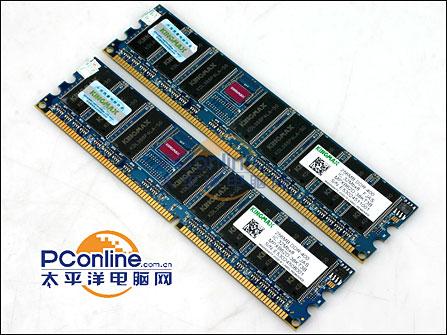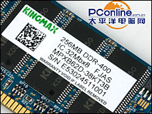作为从SDRAM PC100时代就已经为广大消费者熟知的品牌,KINGMAX 胜创走的一向是高性价比的路线,所以其DDR 400产品在市场上一直颇受大众关注,不过Kingmax在近期市场萎缩的比较厉害。作为最早推出DDR 400内存的厂家之一,在Kingmax的DDR 400内存可以说是相对较多的,笔者已经见过MBGA封装的绿板、炫彩内存和红色PCB板的TOSP封装的的KingmaxDDR 400(没有如上图的kingmax防伪芯片等等)不过现在市场上可见的KingmaxDDR 400已经多数为这种带全新kingmax 防伪芯片的蓝宝石颜色PCB的“SuperRAM”系列 了。