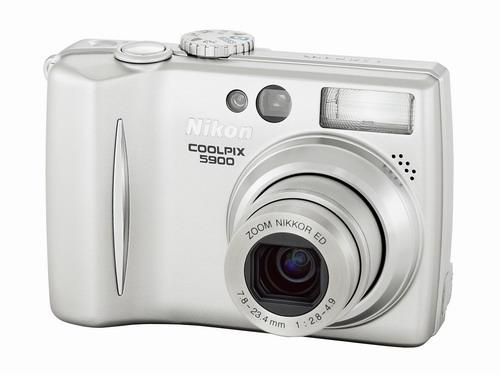 5900延续了5200纤细轻薄的外观,依然采用了1/1.8英寸的CCD,有效像素510万,3倍光学变焦的尼克尔ED镜头,最近微距为4cm,和上代产品相比,CoolPix5900最大的改变就是配备了2.0英寸的液晶屏,而且使用了尼康最新的面部自动对焦技术和“D-lighting”功能,缺点就是依然没有手动功能。