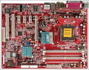这款AG8主板号称专门位玩家制定,采用了桔红色的PCB板,整体做工就豪华二字,采用了INTEL的915P芯片组,主板中拥有大量的固态电容,保证了主板的稳定以及超长的使用寿命,三个PCI-E X1接口,一个X16接口,两组DDR内存插槽。同时主板中还具有了DEBUG侦错灯,通过德仪芯片实现了IEEE1394接口