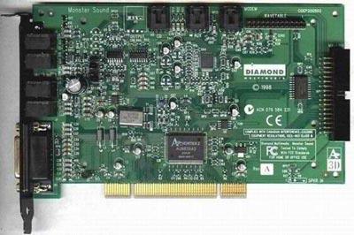 MX300四声道的模式要比两声道模式好得多,特别是后音源的定位,非常清晰准确。MX300是帝盟用来对抗创新的Sound Live系列的重要武器。在1998年年底,如果机器上同时插着SLI的MONSTER Ⅱ(VOODOO2)和一块MX300那一定是顶级的游戏发烧友了