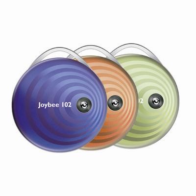 Joybee 102的外形有些类似鹅卵石,为非规则圆形,采用金属外壳,看惯了圆形MP3的倒也可以改个品味了。其外形尺寸为42×8.8毫米(直径×厚度),重量仅为17克(含电池),共有琥珀橙、翡翠绿以及宝石蓝三种颜色可选。虽然没有液晶屏,但是Joybee 102提供了一个橙、绿双色指示灯,在不同的状态下会发出不同的颜色或者闪烁,为其增加了一些动感。