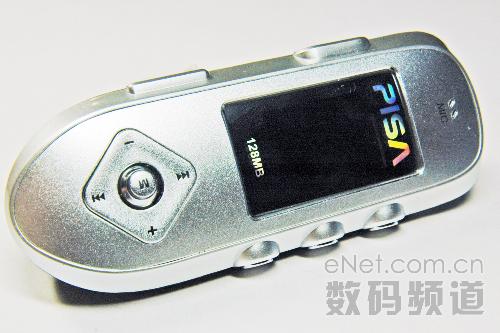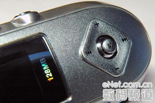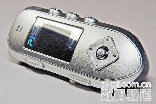 正面的按键不多,就有一个十字导航键来控制播放。引人注意的是一个96X64的65536色OLED显示屏这块屏是这款产品一个设计亮点所在,效果看上去十分养眼。产品的两侧全是播放常用的几个键,比如快进、关机等等。产品的后部就是电池仓这款是采用5号 AA电池来供电的。5号的电池的容量大,播放时间可以更长些,只不过体积只能变的更大了。