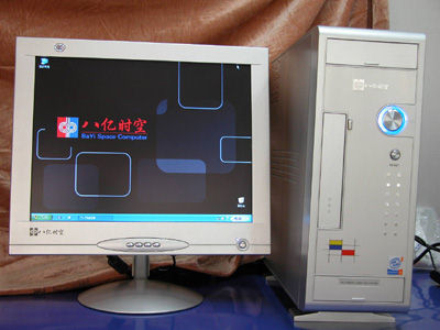 八亿时空的这款机器是在4000元价位上唯一标配17寸显示器的品牌机。其他硬件配置为赛扬1.8GHz处理器、英特尔845GV芯片组主板、128MB DDR内存,40G硬盘,52X CDROM,集成英特尔(R) Extreme 图形加速卡。