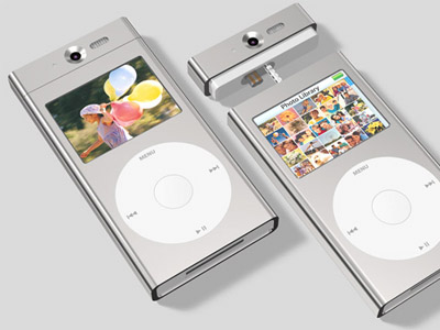 下面您看到的是媒体想像的采用的全新理念的概念型iPod播放器,它的机身将更加小巧轻便,同时功能也更加丰富。由于采用微硬盘已经成为未来的发展趋势,未来的iPod系列播放器将可以保存并播放高清晰的彩色图片,此外还已经集成了数码相机模块,具有丰富的拍照功能。这绝不是异想天开,也许明天你就会发现市场上真的出现这样一款iPod播放器。