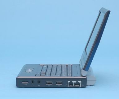 如果只看笔记本本身的话,Libretto U100是一款单轴的笔记本,但是如果安装了DVD底座的话,U100就摇身一变成为了两轴笔记本。DVD底座是经过USB接口进行工作的,可以进行热插拔。