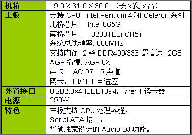 华硕 Terminator2-P Deluxe(爵士黑)的外观造型十分深沉,也是华硕准系统系列强悍的表现。T2 精挑了华硕最新的主板,不仅能够支持采用Northwood旧核心,前端总线速度为800MHz的Pentium 4处理器,就连Intel最新版本,采用Prescott核心的Pentium 4处理器也都能够支持。内存支持高达400MHz的DDR SDRAM,选购加装目前最新最快的Serial ATA接口硬盘,以及8x速度的AGP接口显示卡,在效能的搭配上绝对拥有相当优良的效能。除了性能出众以外,华硕独家设计的Audio DJ功能,能够让使用者在不开机的情况下,即可聆听CD音乐。其他接口丰富,大大满足了办公和家庭娱乐需要。
