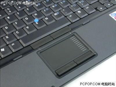 在输入方面,nc6230配备了标准尺寸的键盘和触摸板加指点杆双鼠标触控,另外一个人性化设计就是上图中的光线感应器。通过这个感应器,笔记本自身可以根据周围环境的亮度自动调节屏幕的亮度到一个不刺眼的程度,对视力的保护很有好处,而对于电池电力的节约也起到一定作用,是一个不错的设计。