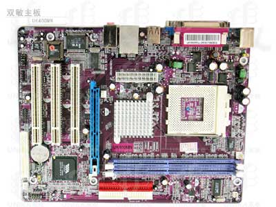 双敏UK400MN采用VIA KM400+VT8235芯片组,支持最新的Sempron(闪龙)处理器,内建VIA Unichrome强劲图型核心,能为用户提供入门级的显示性能,能支持03年前常见3D游戏。采用Micro ATX小尺寸板卡布局,只有3条PCI插槽,具备一个AGP 8X/4X接口,支持AGP显卡扩充,对以后想电脑升级的用户做好了准备。内建VT6103 10M/100M自适应网卡芯片,满足一般上网要求。内建 VT1617A 6声道AC 97 CODEC声卡,满足大多数音响要求。