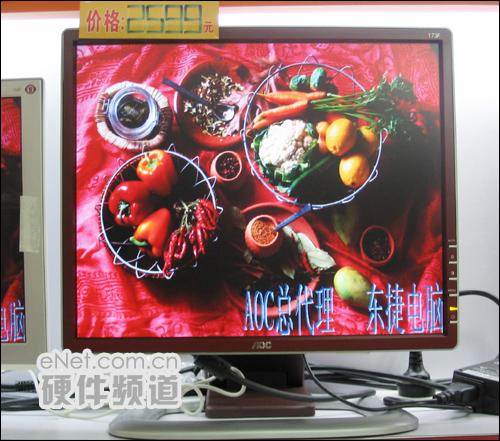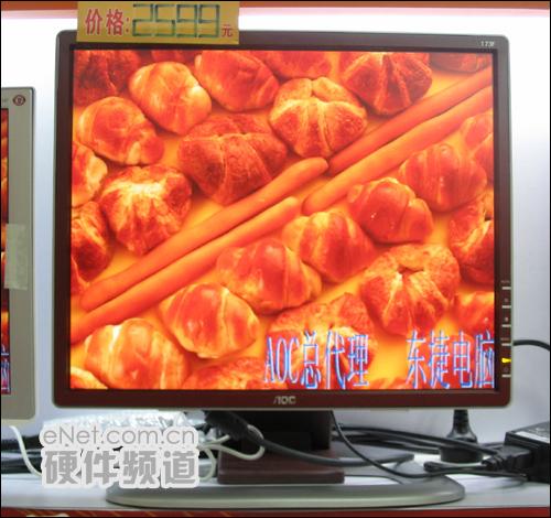 图为:AOC 173F 在其他的性能上,AOC 173F也非常出色。分辨率分别为1280*1024,点距达到0.264mm,在亮度上达到270cd/m2的高亮,对比度则是500:1的高对比度,这就在根本上保证了画面显示效果的清晰锐利,逼真细腻。难能可贵的是,AOC 173F还具有sRGB色彩管理功能,用于消除不同显示系统在色彩还原上的差异,使显示器与打印机/投影机及其他显示设备呈现相同的色彩。