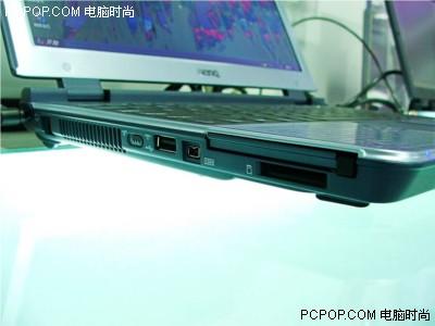 Joybook 7000-CR1同样拥有较宽的机身,因此其后侧除了占据四分之三背部空间的电池外,还有10/100M网卡接口、S-Video、VGA视频输出以及两个USB2.0接口;而机身右侧则安置着COMBO光驱和一个USB2.0接口以及耳机、麦克风等音频接口;机身的左侧则包括Modem、无线网络开关、一个USB2.0接口、IEEE 1394、一个PCMCIA插槽以及三合一读卡器(SD、MMC、Momery Stick)。