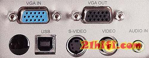 具备 VGA IN?OUT、USB、S、AV四种输入端子,还附有色差端子转接器,支援讯源还算标准。