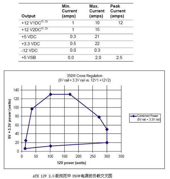 根据自己系统平台的发展,在ATX12V2.0规范中Intel推荐了四种电源规格,分别为ATX12V2.0版250W,ATX12V2.0版300W,ATX12V2.0版350W和ATX12V2.0版400W,这四个级别的电源中对+12VDC的输出要求至少也要达到22A。