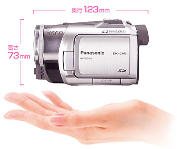 NV-GS150在重量上比松下前一款型号:GS200要轻11%,只有420g,一个手掌摊开就完全可以平放在上面,是目前全球最轻最小的3CCD数码摄像机,真正做到了物有所值。