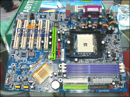 技嘉 GA-K8NS 10F采用nVidia nForce3 250芯片,Socket 754接口,支持AGP 8X、DDR400、SATA,集成5.1声道声卡和100M网卡,属于标准配置。这款主板继承技嘉一贯的优良做工,蓝色大板,用料扎实,CPU供电采用三相电源设计,高品质日系电容,稳定可靠。
