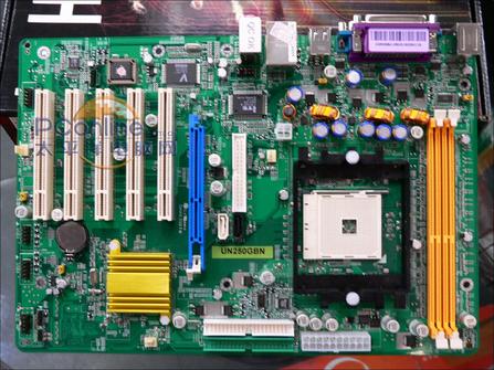 这款UN250GBN明眼人一眼就可以看出是出自捷波之手,采用目前热门的nForce3 250GB芯片组,支持硬件防火墙功能和千兆网卡,价格比相应的捷波 N250DAG便宜了200元。